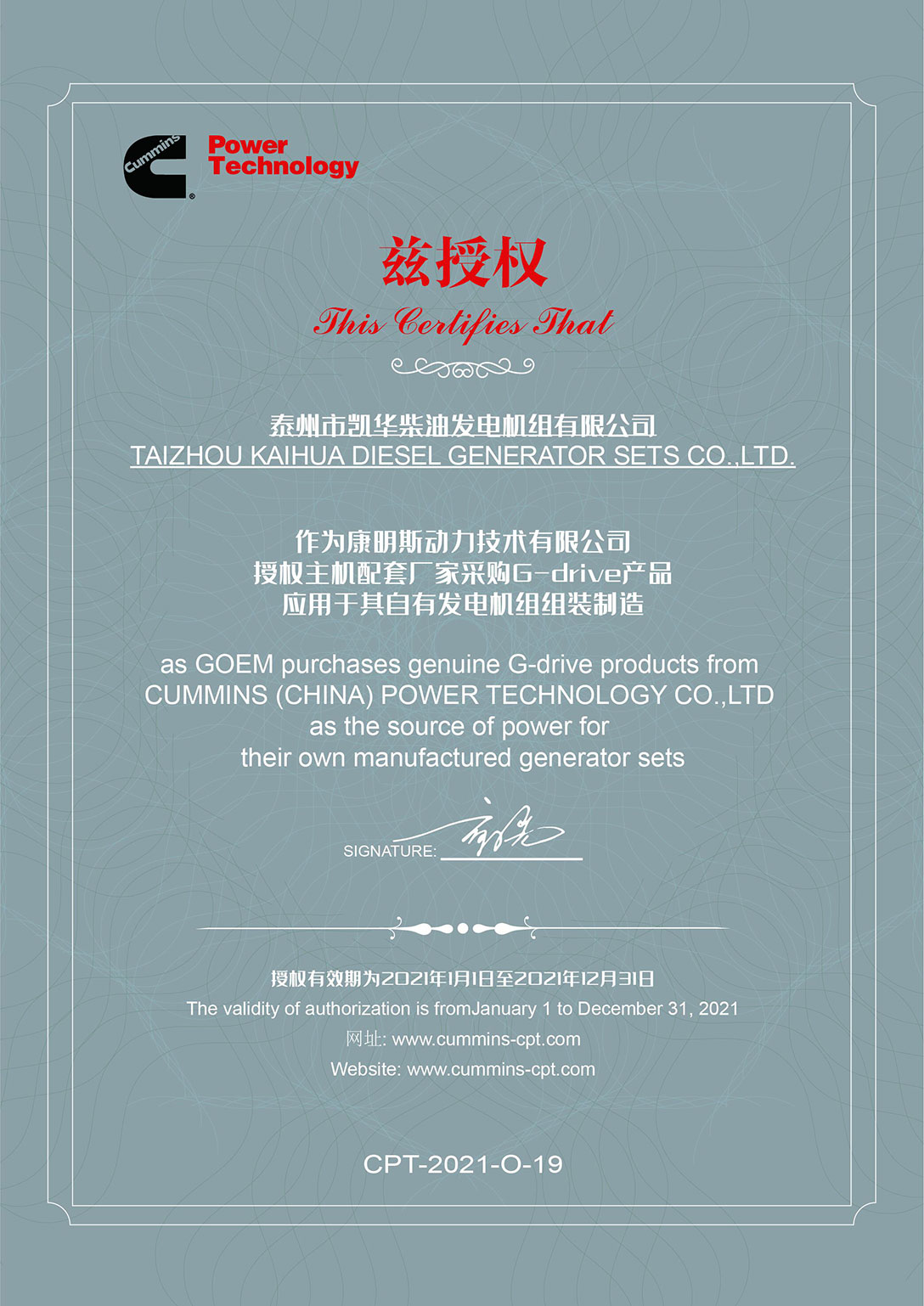 泰州市凱華柴油發電機組有限公司創建于2003年,是一家集柴油發電機組的研發、生產、銷售為一體的高新技術民營企業,公司目前注冊資本金11800萬元人民幣,生產基地占地六十畝,現有各類高素質員工一百多名,專業技術人員達46人,其中高級技術人員16人,年銷售額近6億元。公司主營產品:3~3000KW陸用柴油發電機組,15~600KW移動拖車電站,12~1000KW船用應急柴油發電機組,各種靜音型、中高壓、多機并聯、燃氣等特種機組以及進口系列柴油發電機組,可滿足不同客戶的不同電力需求,還可滿足用戶不同電壓、不同頻率的要求。